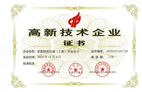 在2024年全国两会"人工智能+"行动写入政府工作报告的背景下,传统制造业的智能化转型再次成为焦点。作为五金行业转型升级的标杆,诺霸精密机械(上海)有限公司凭借持续创新的硬核实力,再度通过高新技术企业认证,以"智能+"技术重塑传统五金产业,为中国制造高质量发展写下生动注脚。