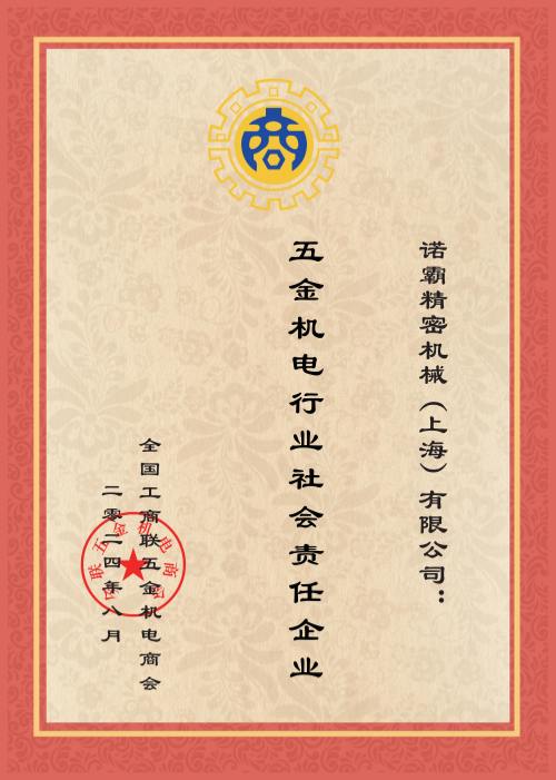 全国工商联五金机电商会感念于诺霸上海的执着与奉献,在此次商会评选内授予诺霸上海“五金机电行业社会责任企业”及“五金机电行业优秀企业”的殊荣,希望激励诺霸继续保持这份初心与热忱!