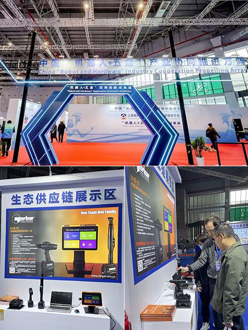 恰逢此次博览会,诺霸应“机器人+五金”应用创新服务平台之邀,与平台一同联合参展,在展会上展出了M系列的传感器式智能电动扭矩工具,并吸引了不少来往客商的关注。