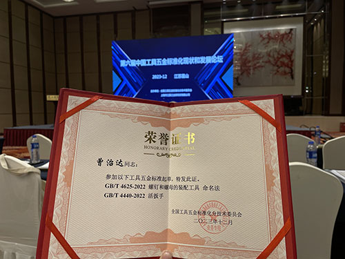 4440-2022的起草工作。在年会上被授予了“工具五金标准起草人员”荣誉证书。